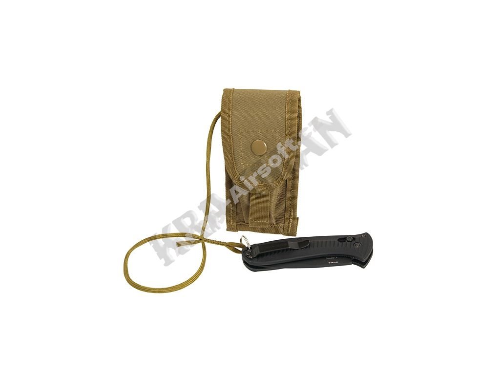Taktická sumka je vybavena poutkem o délce 45cm, kt slouží k uchycení nože, nebo klíčů od ztracení. Délka poutka je tak dlouhá proto, aby se mohlo předmětem volně manipulovat a aby Vás neomezoval. Sumka je připinatelná pomocí systému molle.
