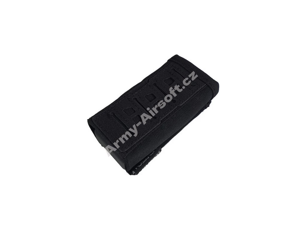 Díky pevnému elastickému svoru zásobníky při pohybu nevypadávají, ale při tasení jsou ihned po ruce. Laser-Cut MOLLE vazba na přední straně umožňuje připnutí dalších sumek, takže můžete snadno rozšířit svou výbavu bez zbytečného zvětšení profilu.