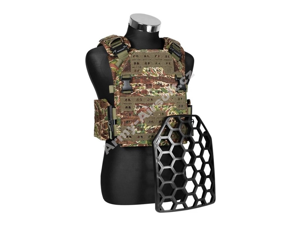Nosič váží pouze 1,69 kg a využívá Hex Plate vložky se síťovanou základnou, které zajišťují dobré proudění vzduchu pod vestou a pomáhají omezit přehřívání. Díky QD sponám na bocích lze vestu rychle nasadit nebo odhodit, zatímco nové pantové (hinge) spony na ramenou zvyšují spolehlivost a komfort.