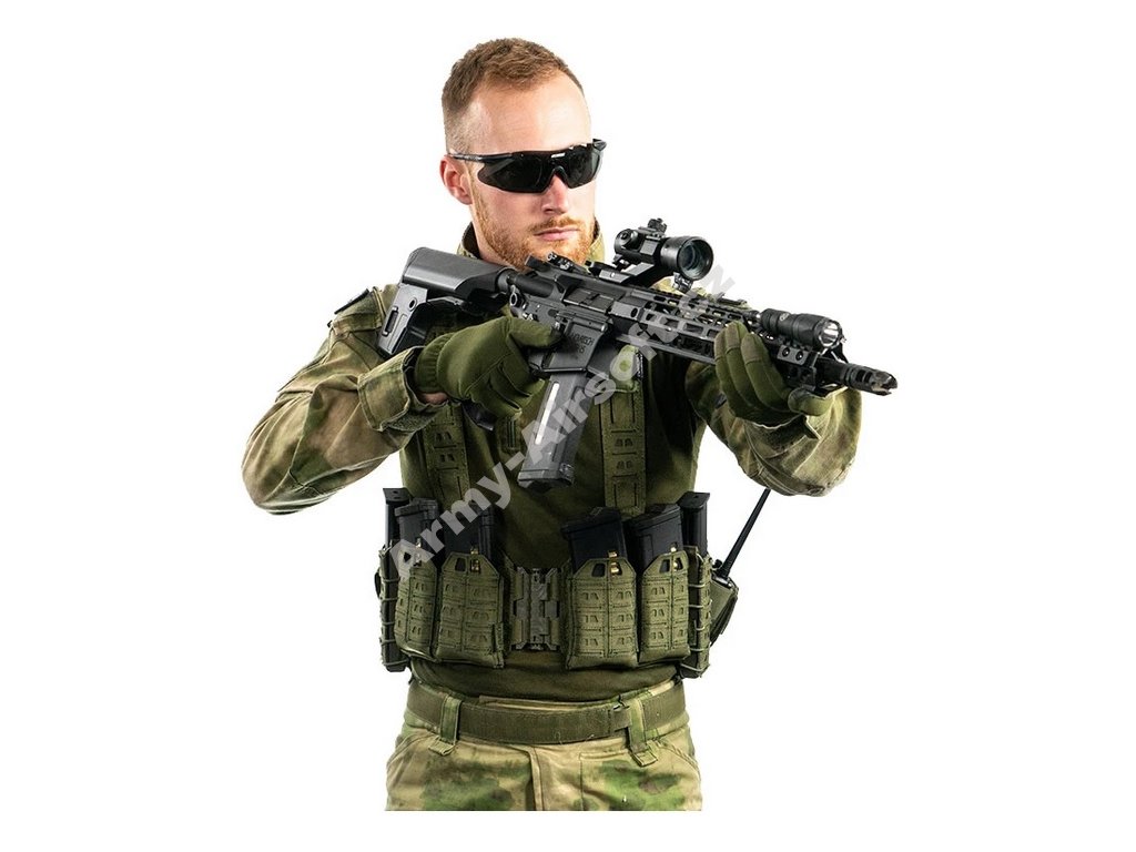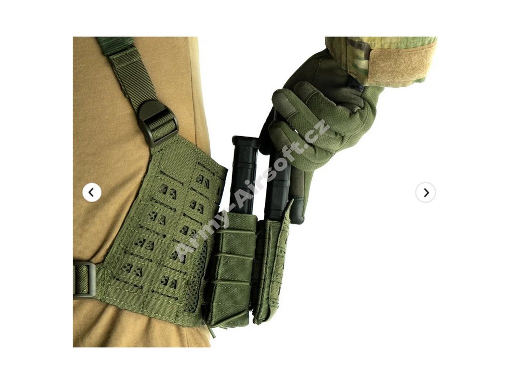 Hledáte nízko-profilovou výstroj s maximální volností pohybu? Chcete přenášet dostatek zásobníků bez ztráty komfortu? Tento LOW-PROFILE MOLLE chest-rig je vyroben z Nylonu 1000D s laser-cut MOLLE systémem, což zajišťuje vysokou odolnost při zachování nízké hmotnosti a dobré prodyšnosti.