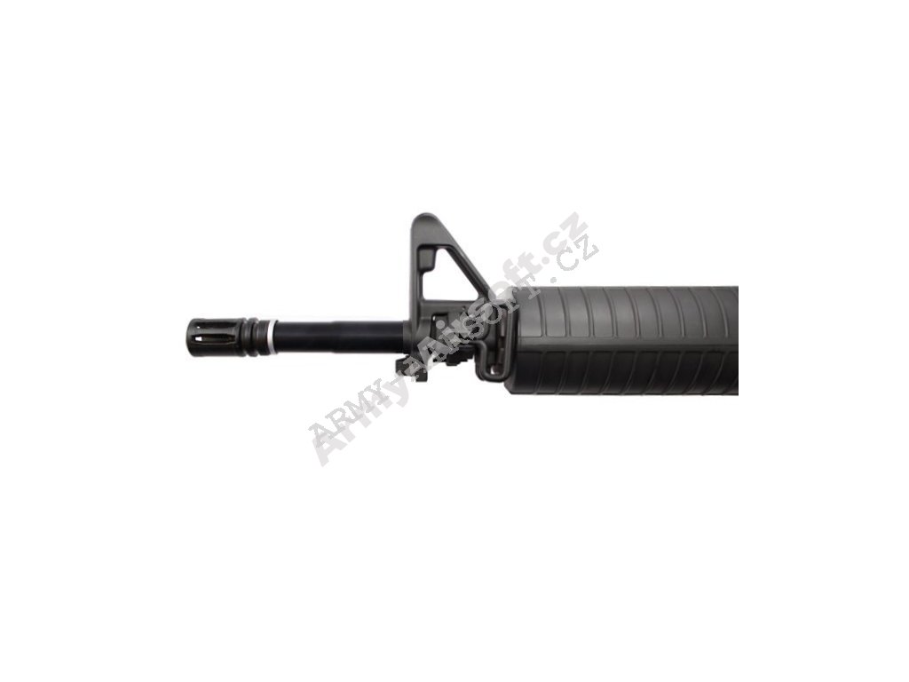 Kovový kus vnější hlavně pro elektrické zbraně. Délka 8 cm. Na jednom konci je vnitřní závit a na druhém vnější. Oba 14mm levotočivé. Na vnější závit lze namontovat běžné kompenzátory, nebo jiné tlumiče. Vzhledově určeno pro zbraně M4, ale hlaveň lze našroubovat i na většinu ostatních zbraní. Například G36, AK, P90, MP5, SCAR...atd.