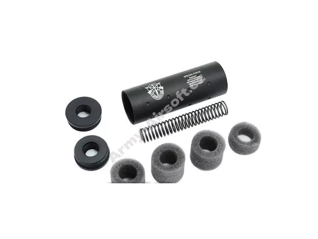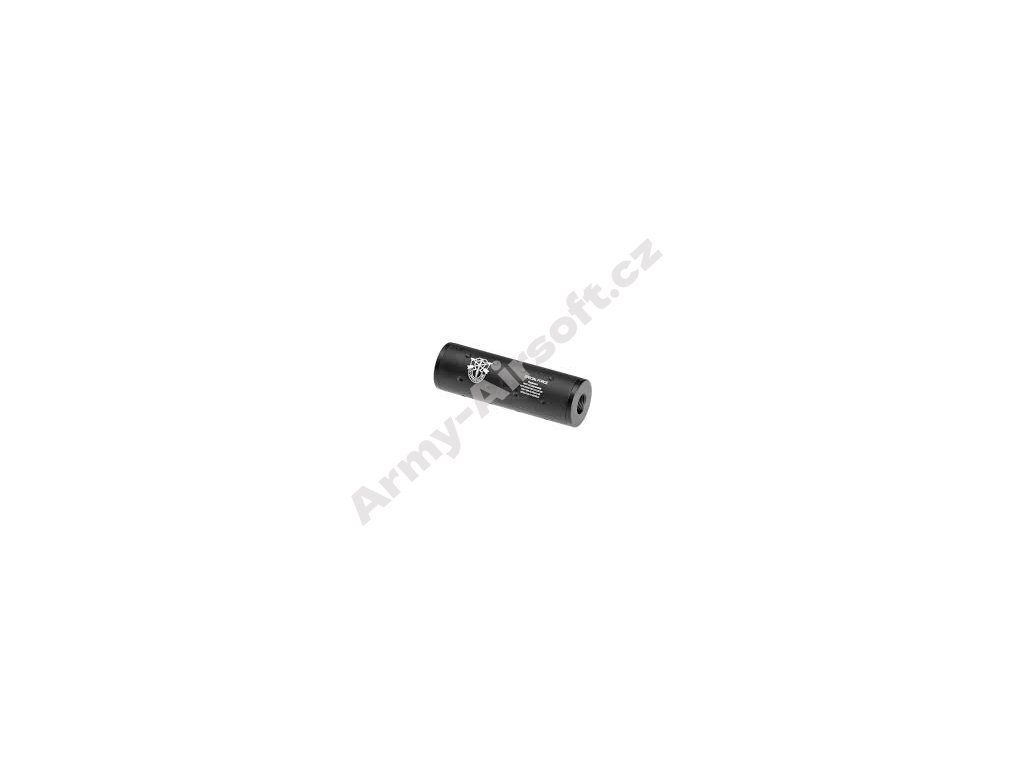 Tlumič vyrobený z kovu, přizpůsobený pro montáž na jakoukoli repliku s hlavní končící standardním závitem 14 mm.
