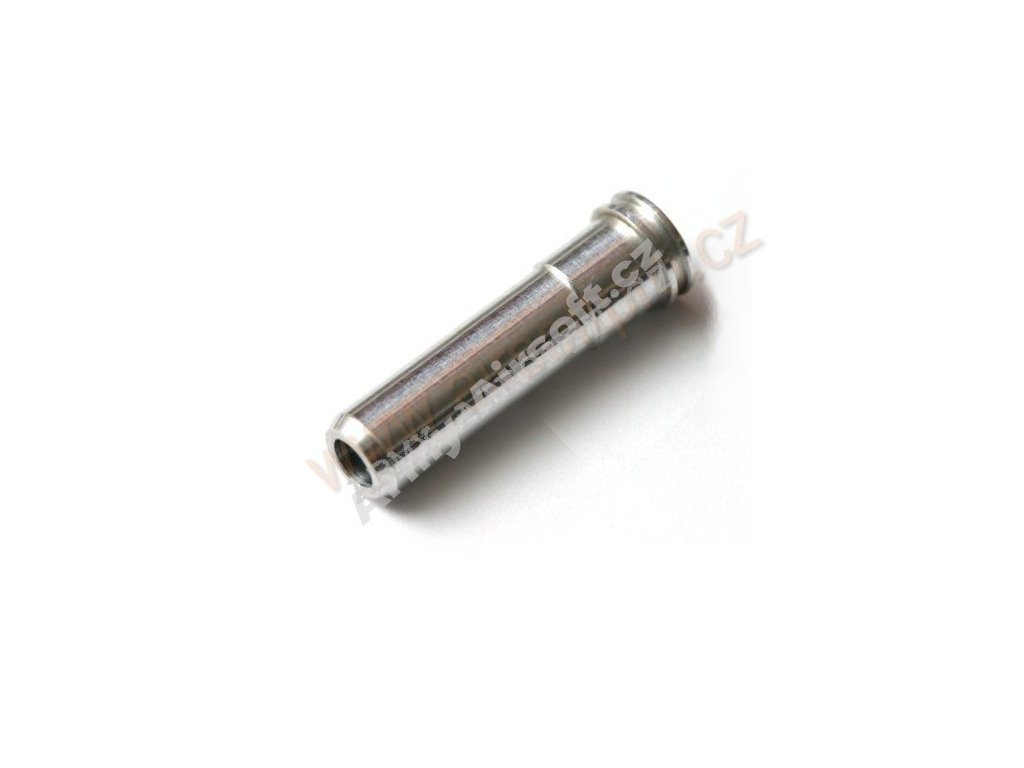 Hliníková odolná tryska s dvojitým těsněním pro maximální utěsnění při výstřelu. Je vyrobena na přesných CNC strojích a její hladký vnější povrch zaručuje dobrou kluznost v komoře. Délka trysky je 35mm a je určena pro kulomety M60 od firmy A&K. Tryska je NBU, protože výrobce používá v této zbrani NBU vzduchotechniku. Při montáži je důležité styčné plochy hlavy válce a trysky namazat vazelínou, nebo silikonovým olejem.