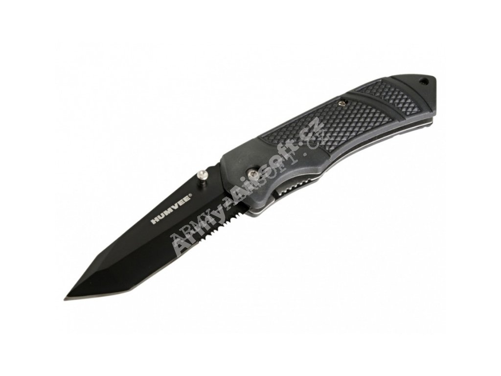 Nůž Humvee Goliath Drop Point s černou Tanto Stainless Steel kombinovanou čepelí v poměru 3:1 (hladká:vroubkovaná).