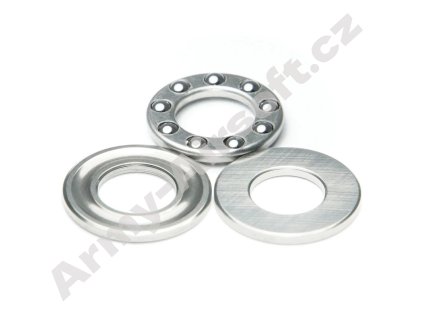 Dva kusy přírubových kuličkových ložisek, která slouží ke snížení rotačního tření a k podpoře radiálního zatížení.